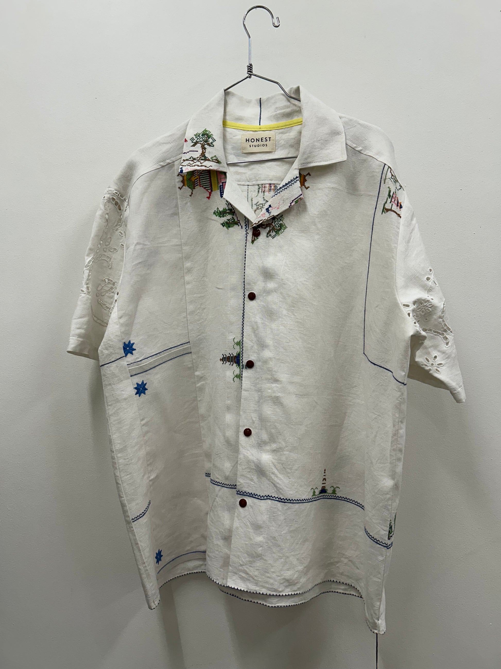 The Fergie shirt is our take on a classic relaxed oversized collared shirt. Designed to be worn open or closed with snap fasteners.