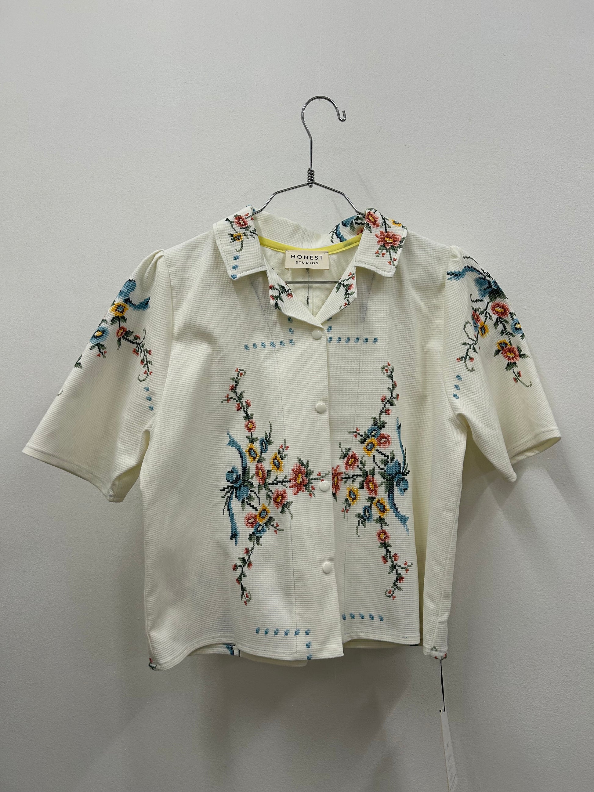 Made from vintage embroidered tablecloths. Each one is a one off. Fastened with snaps down the centre front.